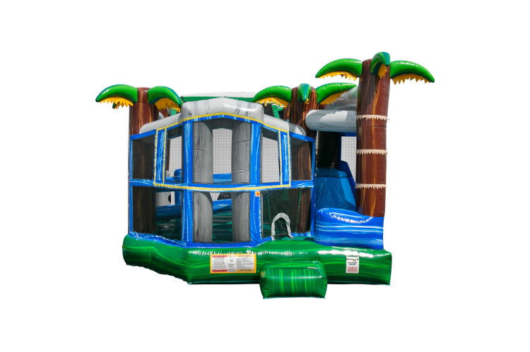 This combo obstacle bounce house delivers nonstop excitement! With a large jump area, basketball hoop, log obstacles, and pop-ups, kids stay active and entertained from start to finish. A built-in climb and exit slide turn up the action, while 360° mesh sides give parents a clear view at all times.
